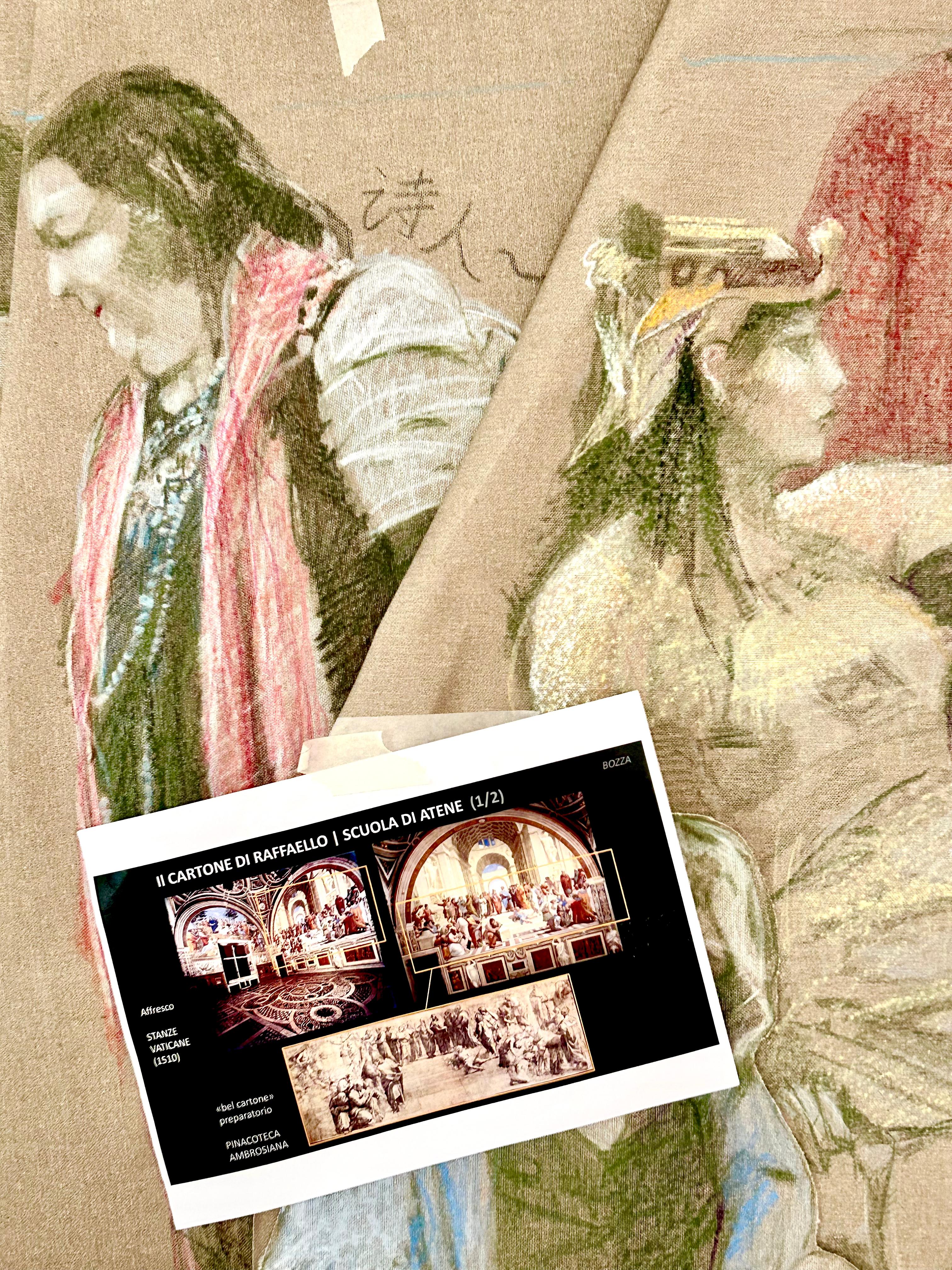 The artwork was an opportunity for participants to explore the thought of the figures featured in the original Renaissance work (philosophers, mathematicians, artists, from Plato to Michelangelo...), while reflecting on their own ‘masters' and reference figures—whether contemporary or ancient, public or personal”.